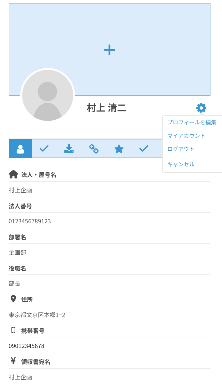 プロフィールの情報を新しくしたり、修正したりしたいときは、この歯車のようなマークから進みましょう。