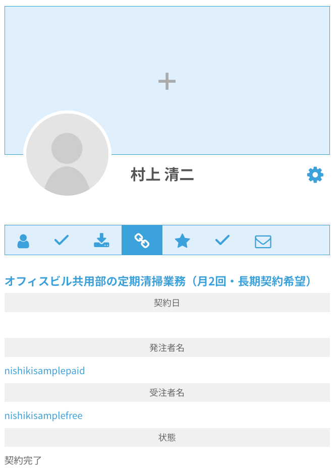 これまでに契約を結んだ案件が、一覧になって表示されます。 自分が過去にどんな仕事を成約させてきたのかを、他の会員に知ってもらうための機能です。 契約件数が多いほど、会員としての信頼度はぐっと上がります。